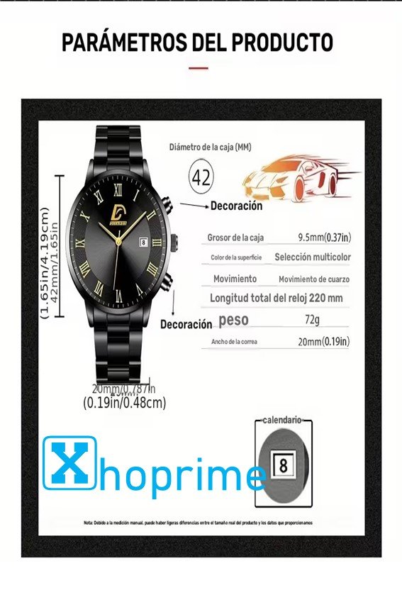 | Relojes | Azul Dorado, Negro Dorado, Negro, Negro Azul |