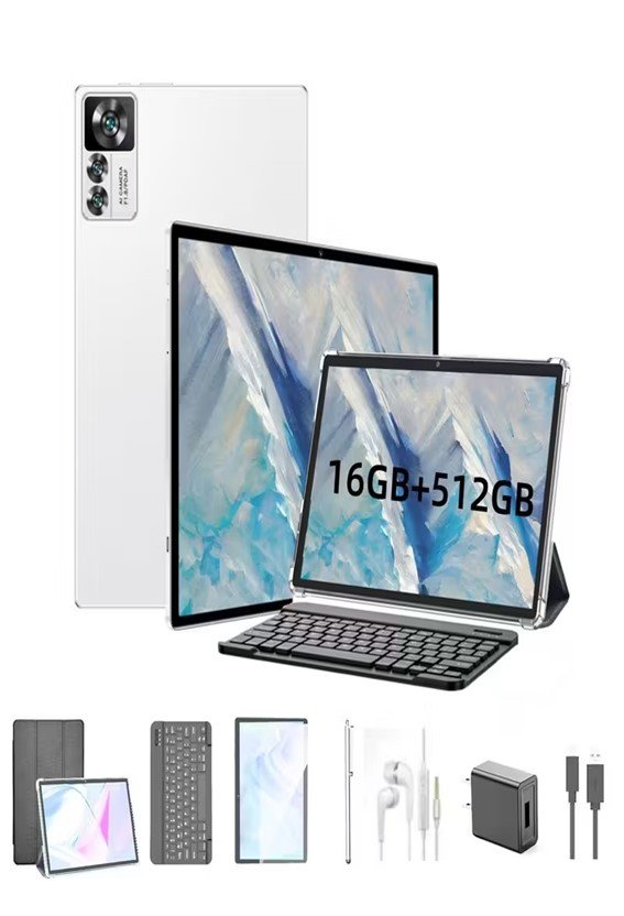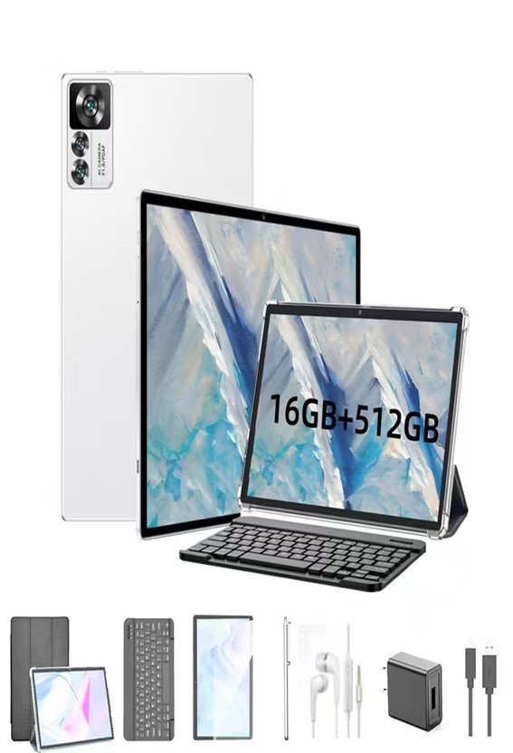 Equipado con el sistema operativo Android 14, tableta de 11 pulgadas, tableta 12s pro 2 en 1 (con teclado, auriculares, funda protectora, bolígrafo táctil) 16 GB + 512 gb, Cámara doble, procesador de 10 núcleos, pantalla táctil IPS de alta definición 2560×1600, GMS tab, Wi – Fi 5g, google, tableta